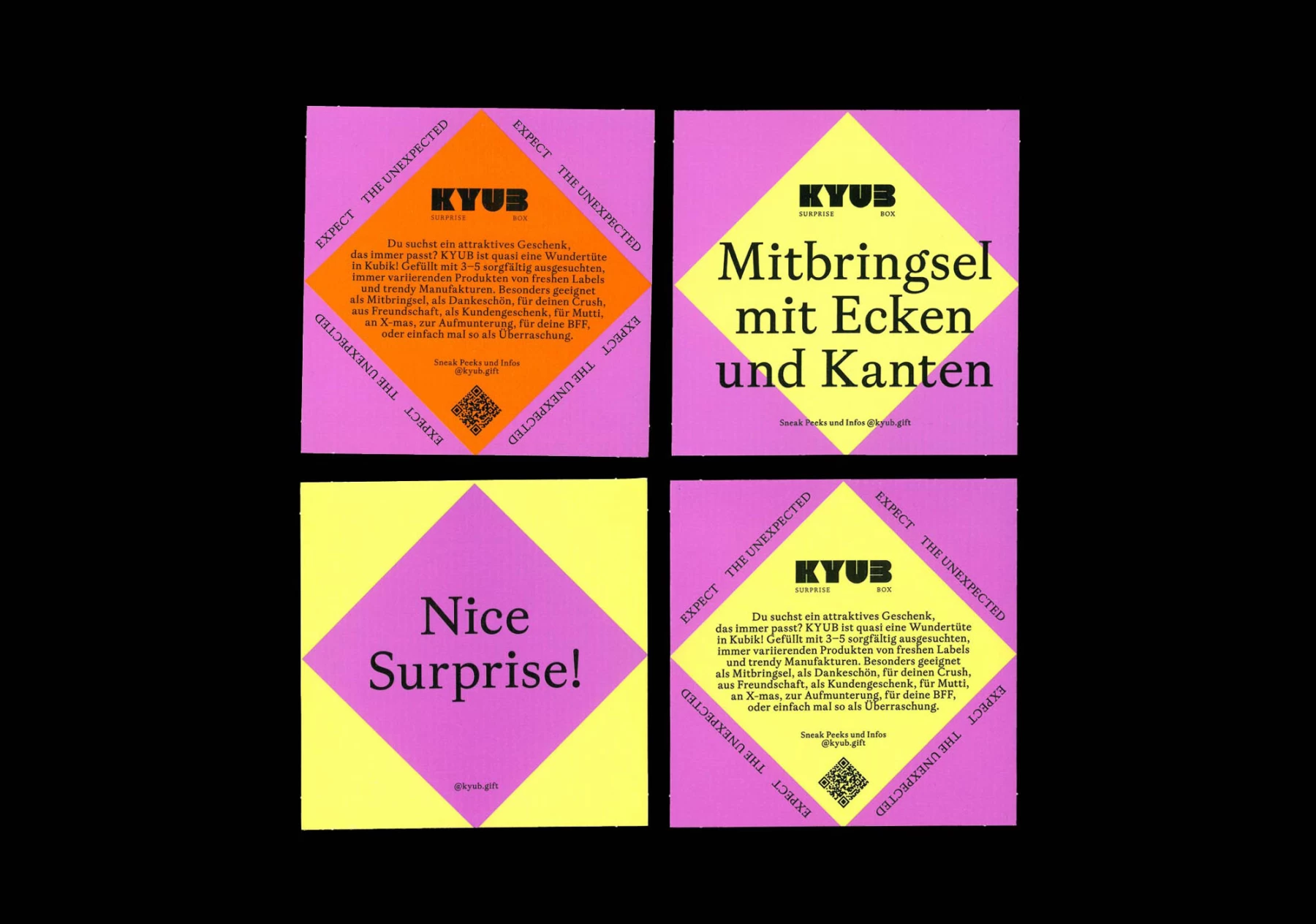 KYUB. Ein attraktives Geschenk, das immer passt. Quasi eine Wundertüte in Kubik mit 3–5 sorgfältig ausgesuchten, immer variierenden Produkten von freshen Labels und trendy Manufakturen. Ein eigenes Produkt, made by BÜRO SPRENG